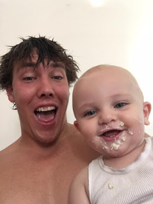He loves to swim and climb and of course loves his food - just like his daddy - he can now say Mum, Dad and bub and is so close to walking.